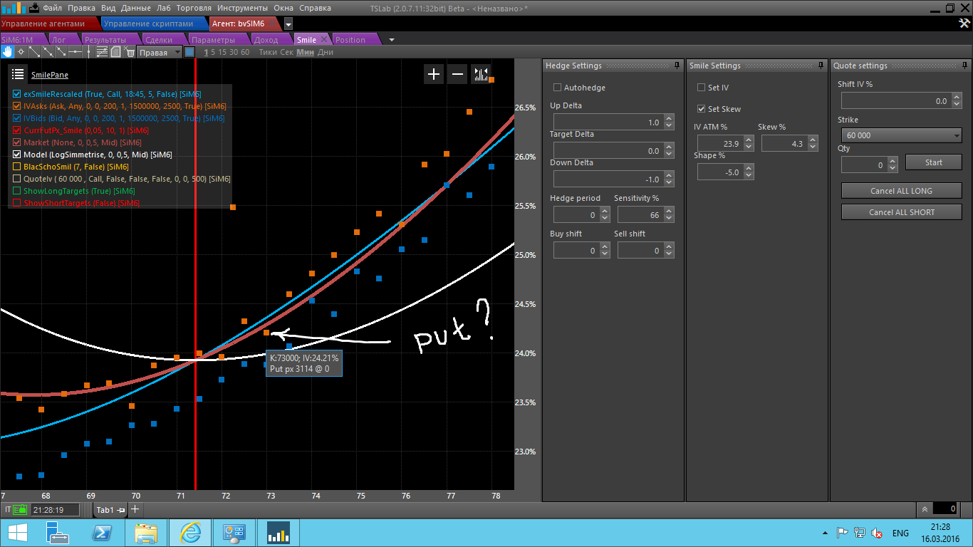 Запустил агент Buy Vola на SIM6 и вижу на графике Ask в Put на 73000 страйке, который в деньгах, по цене ниже маркета. Вопрос, при каких настройках агента будет совершена покупка данного Puta ?