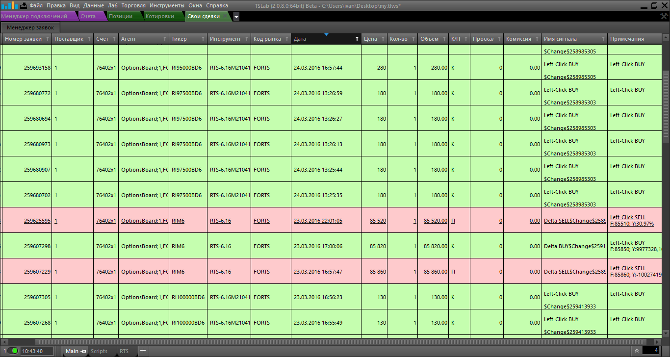 Создавая каждый из этих инструментов Вы указываете не только инструмент, но и торговый счет.