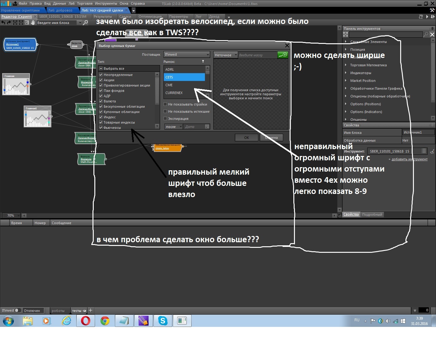 3 я конечно понимаю, что обратно подключить функционал поиска не каждый програмист сможет, а уж тем более сделать как в TWS... но сделайте окно выбора ценных бумаг раза в 2-3 крупнее ... чтоб не надо было ползунками искать...