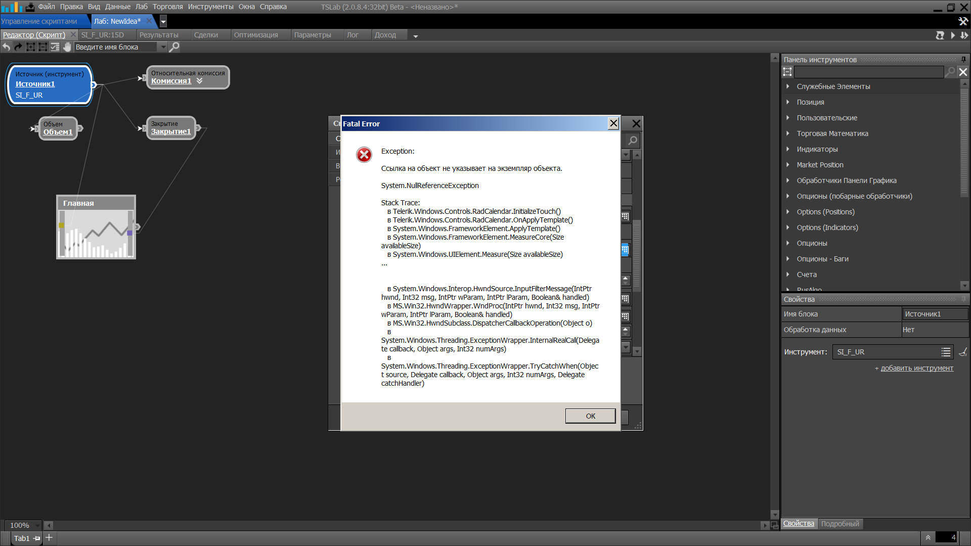 08:16:30.75 137 Элемент 'TRIX' содержит ошибку: Не найден обработчик класса TSLab.Script.Handlers.TRIX, TSLab.TestHandlers, Version=1.0.0.0, Culture=neutral, PublicKeyToken=null.