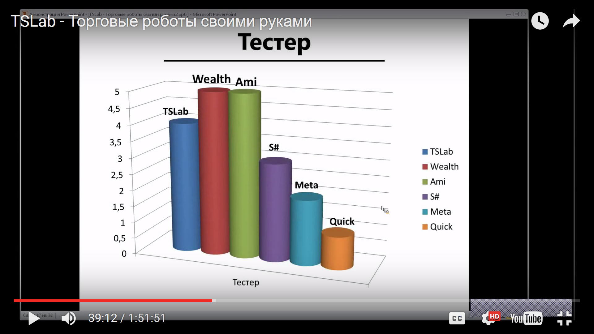 Тестирование и анализ две разные вещи. Велслаб тоже очень слаб для анализа. Смотрю запись вебинара: https://www.youtube.com/watch?v=oKE75eR7k30Здесь нет сравнения программ в разрезе анализа стратегий. Сравниваются возможности тестирования и оптимизации, и в обоих случаях WealthLab занимает не последние места (наравне с Amibroker). Возможно потому, что анализировать нужно самому, то есть программы для анализа стратегий в принципе нет. Возможно чтобы не обижать эти программы  . Анализ стандартно делают в программах типо Эксель, Матлаб, R. Там можно покрутить данные со всех сторон и посмотреть что выходит. Эксель конечно круто проигрывает. Матлаб и R предназначены для анализа данных, собственно как раз для оценки результатов и подходят. Но для начала эксель пойдет нормально. Велслаб дает неплохой набор приблуд для первичной общей оценки результатов. В любом случае для хорошего изучения он тоже не подходит.