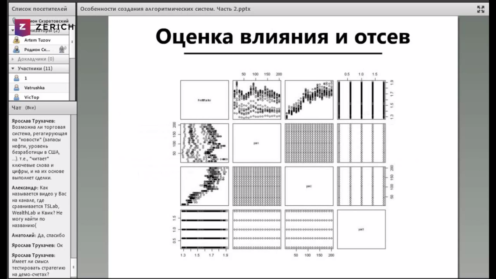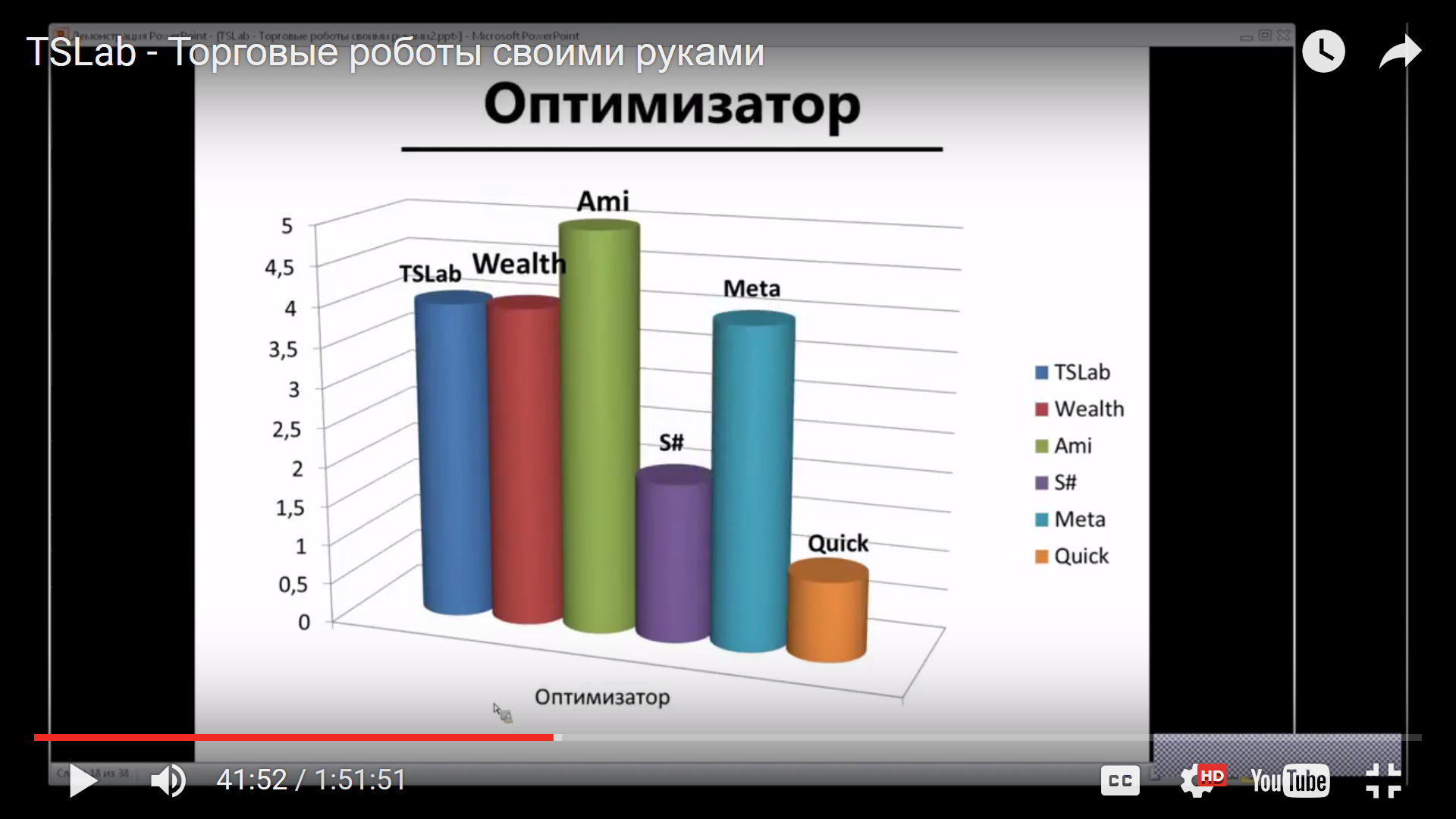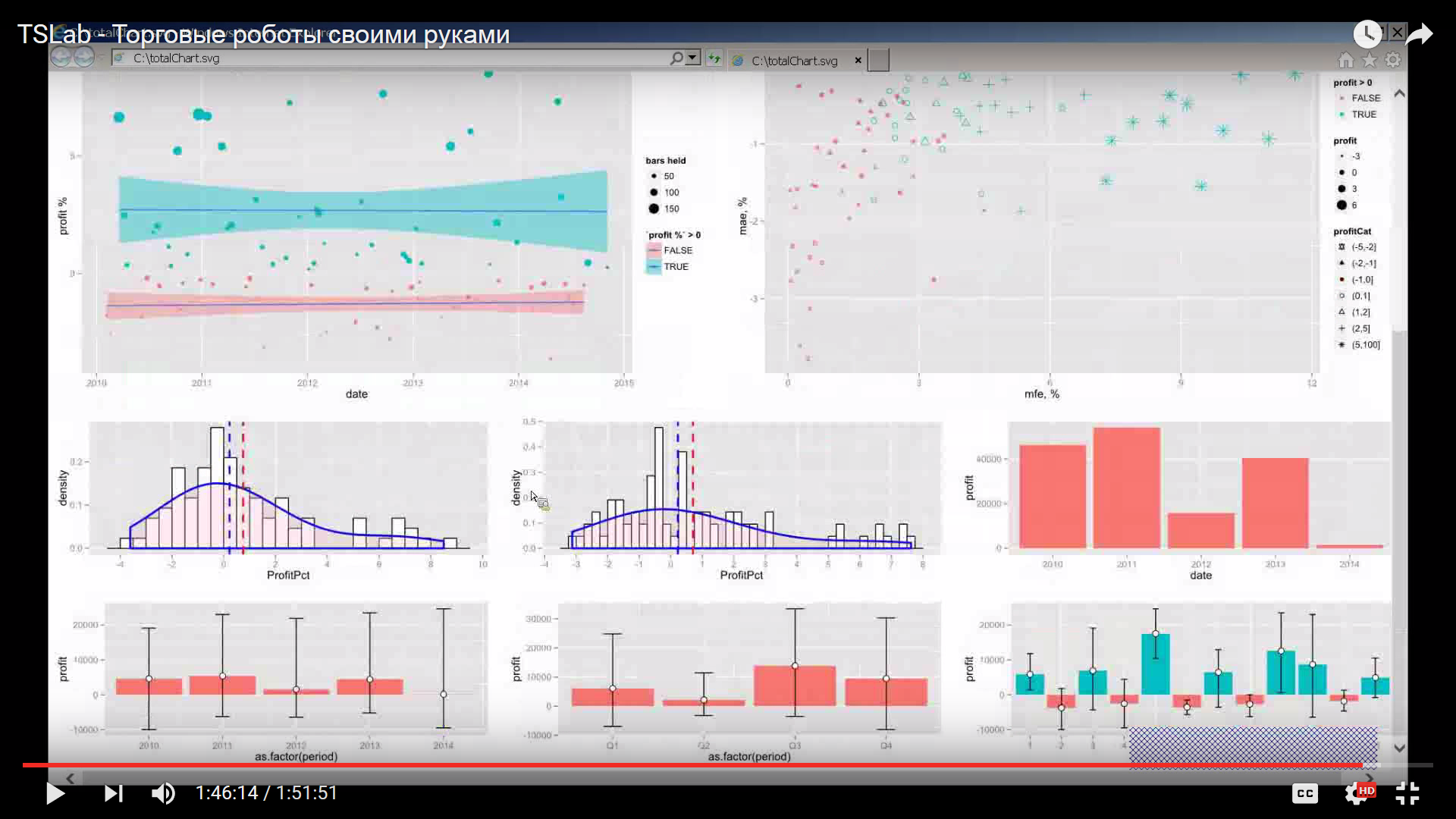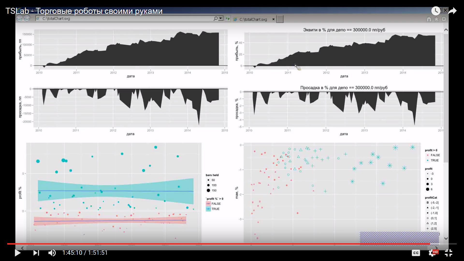 Там была такая квадратная фигня с точками состоящая из нескольких квадратов поменьше. Чтобы найти эту "фигню", пришлось просмотреть весь вебинар "Алгоритмические торговые системы. Особенности создания". Прикладываю картинку. Она оказалась в самом последнем видео: https://www.youtube.com/watch?list=PLu4p4vgekQCGB4BgijG1WjYrlE20kweSm&v=IKrTcZiOM7UНо ничуть не жалею, что просмотрел вебинар целиком: получил массу полезной информации, в том числе и по оценке систем. К тому же, там есть интересное предложение, и я им воспользовался - отправил запрос на email. Но что вы хотите увидеть? :)). Я не знаю. Есть идея написать статью про R на своем сайте. С удовольствием прочитаю статью, когда она выйдет. А что я хотел увидеть - я увидел на приложенной картинке. Спасибо. Думаю, вполне реально это сделать в Excel. Но я не призываю садиться на R, сейчас модно Python хотя в среднем по миру они поровну используются. Майкрософт ударился с R и даже прикупил компанию одна и внедряет в свой sql сервер поддержку R кода. Поддержка Microsoft – это серьёзно. У них даже среда R есть своя: https://mran.microsoft.com/open/С другой стороны, если биржа выпускает примеры TWIME на Python, это тоже говорит в его поддержку. Пока затрудняюсь сделать выбор.