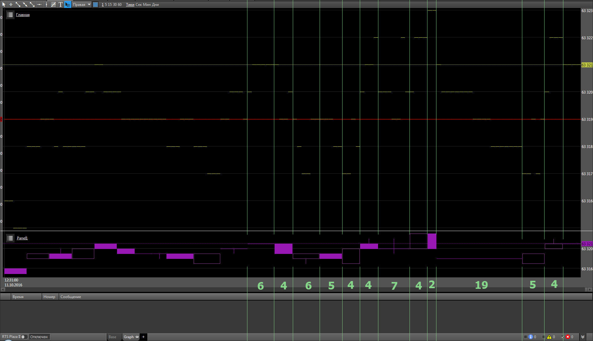 Если попытаться сжать тиковый график (1 > 10, например), вывести его на экран, а на экране рядом вывести тики, станет заметно, что:
