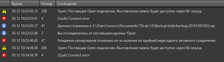 - В TsLab заново создал поставщика, настройки оставил по умолчанию.