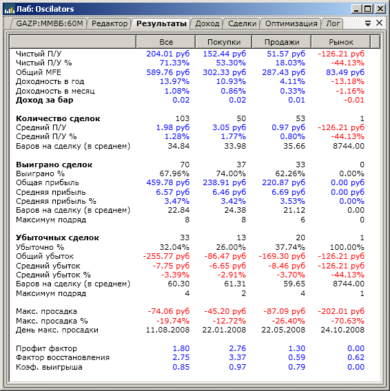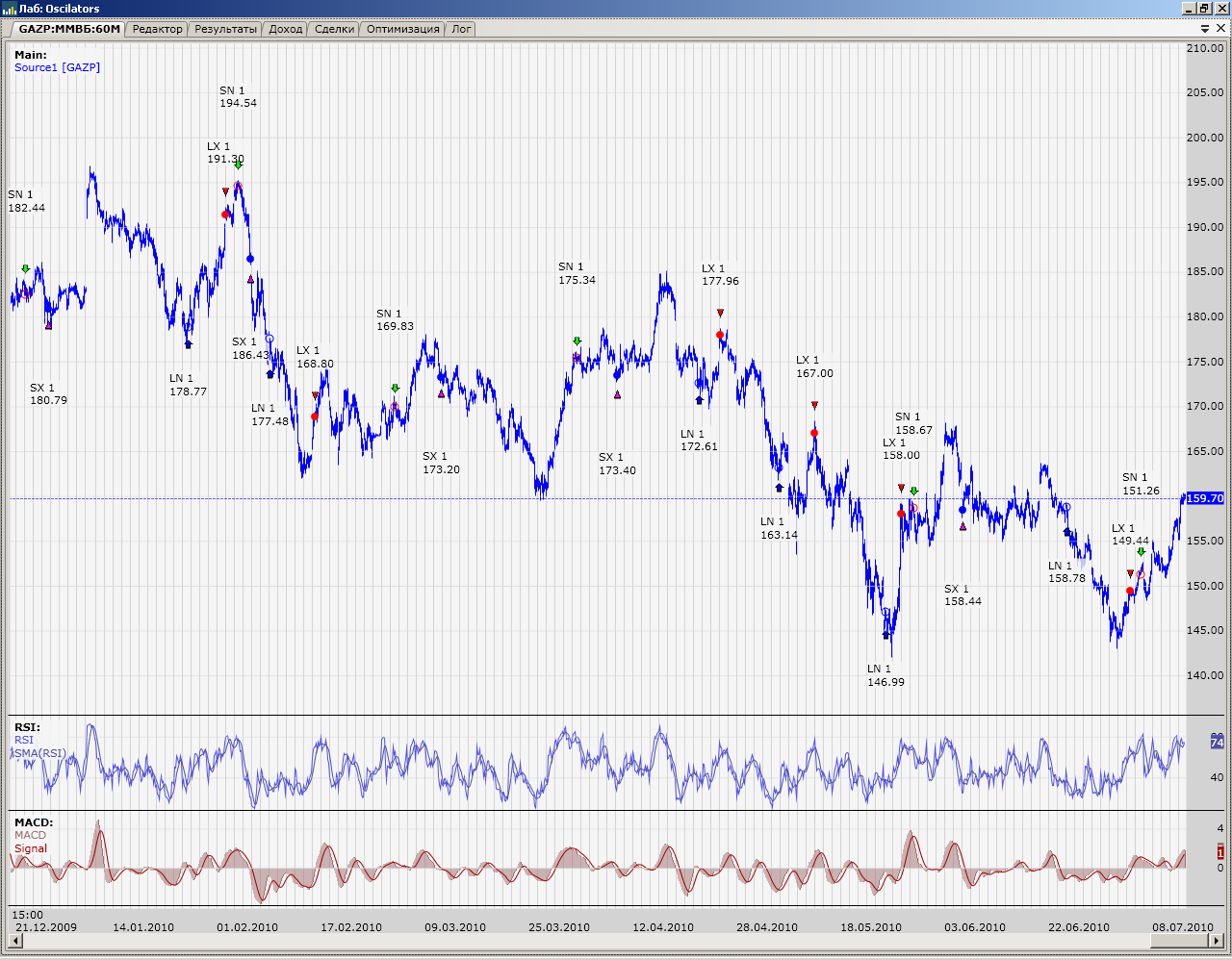 Для реализации стратегии Two Oscilators за основу взят скрипт на сайте Wealth-Lab.