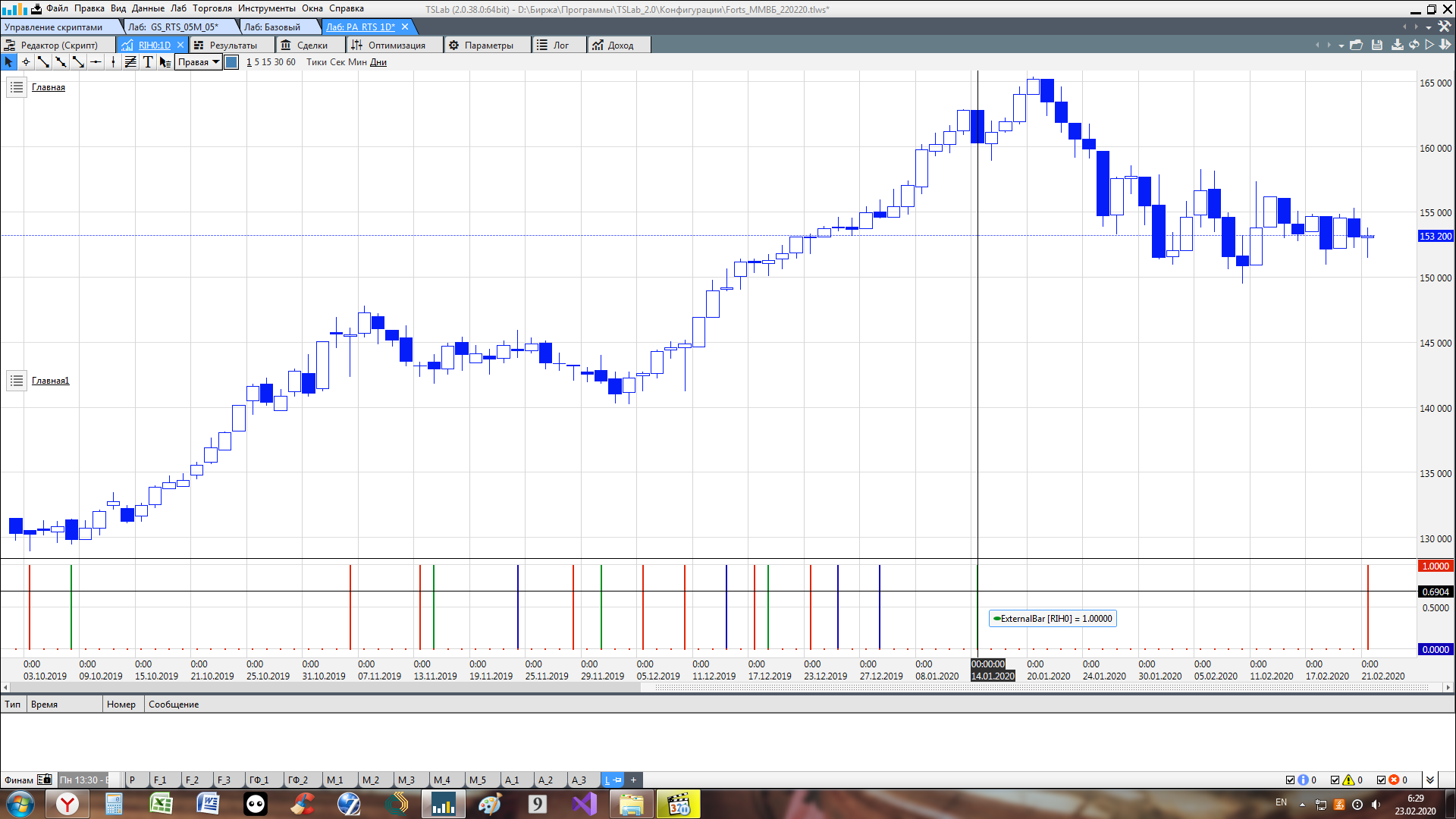 что за индикатор? выложите пример(скрин или фото)? Станислав, приветствую Еще раз озвучу просьбу выложить тики RTS 12-19, Si 12-19, и RTS 3-20, Si 3-20 по настоящее время Тоже веду разработку собственных индикаторов на основе ленты. Ищу партнера для реализации идей