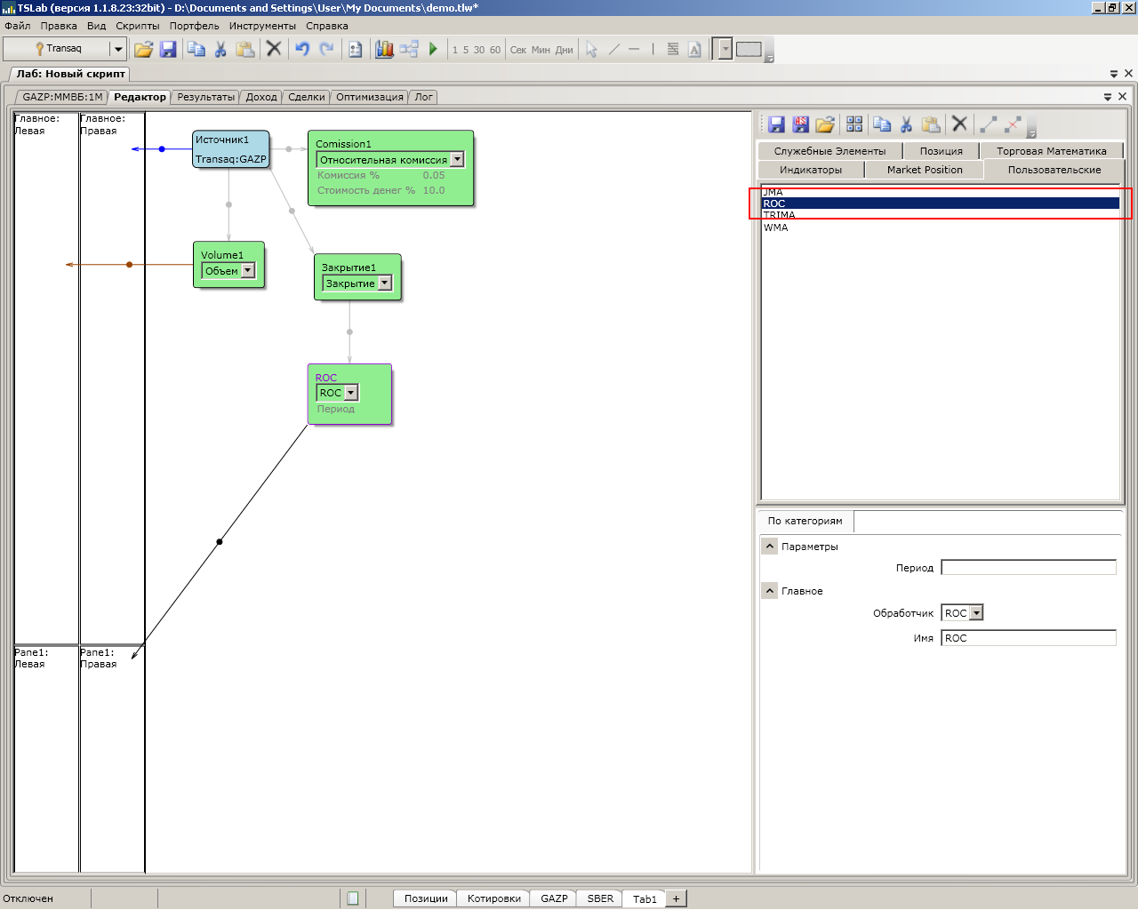 3. Запустить программу TSLab. Зайти в редактор шаблона (в графике/скрипте) и выбрать закладку