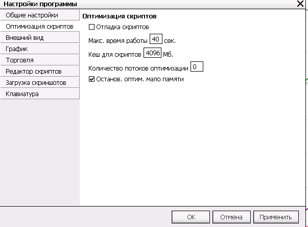 Файл --> Настройки программы --> Оптимизация скриптов --> Размер кеша для оптимизации.