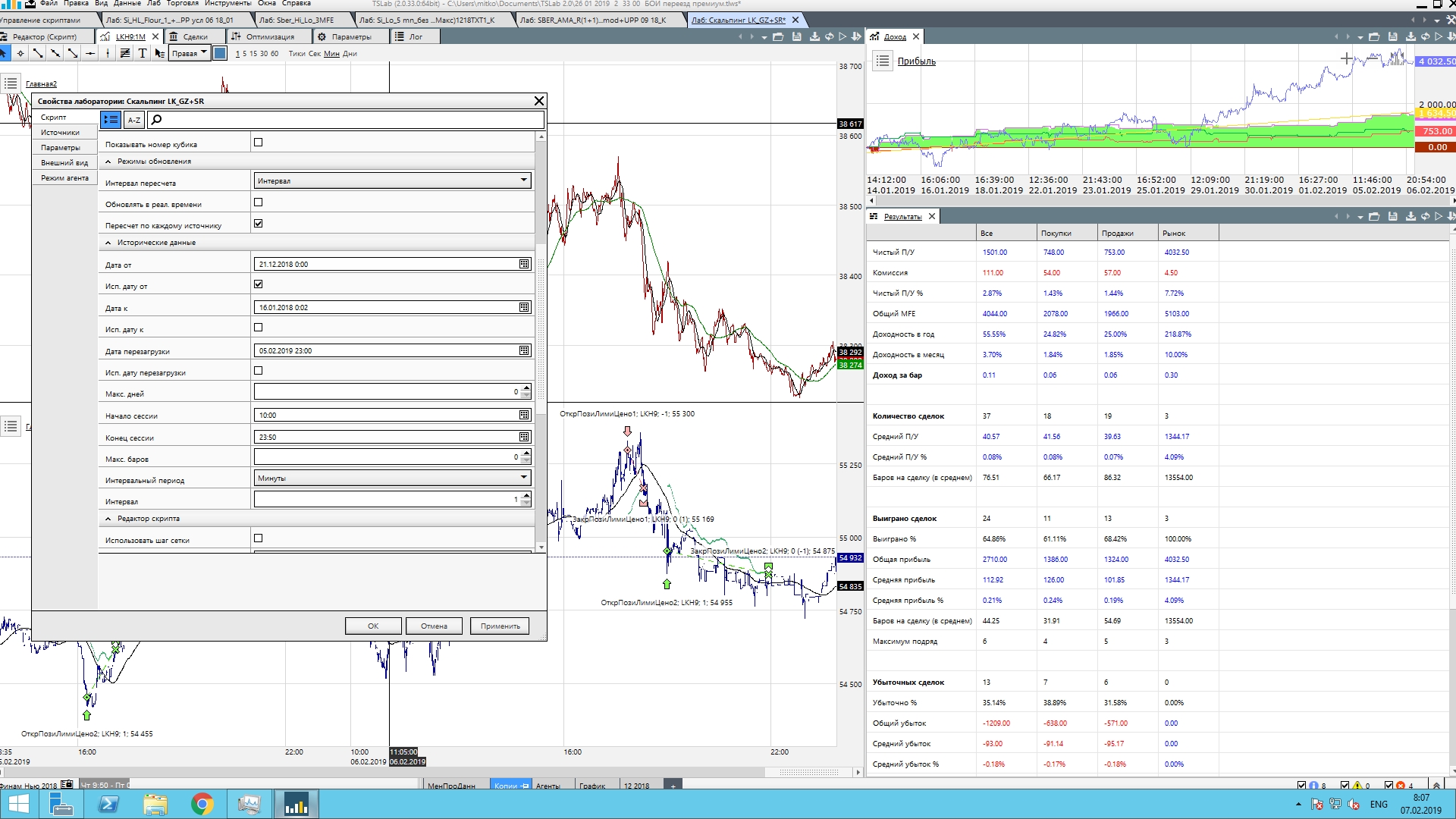 Вчера я обещал дать скрипт для скальпинга. В частности LK / GZ+SR Итак. Робот №3 Рабочий инструмент Лукойл. Индикатором служит корзина (Газпром и Сбербанк). Информация о доходности и скрипт находятся здесь: https://drive.google.com/open?id=1nce6Rl6-ewg9tXfSFQAnzCVp0LF-UX5jrawQ-ctxNWoОбратите внимание на кубик разрешённого времени входа. Открывать позицию можно только во второй половине дня. Этот подход нами используется довольно часто.