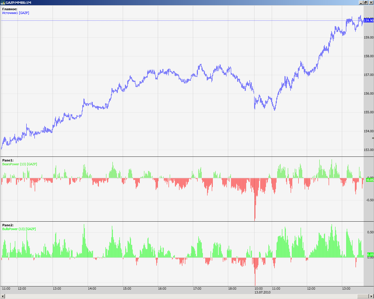 Рекомендуется не открывать короткие позиции, если осциллятор Bulls Power отрицательный.