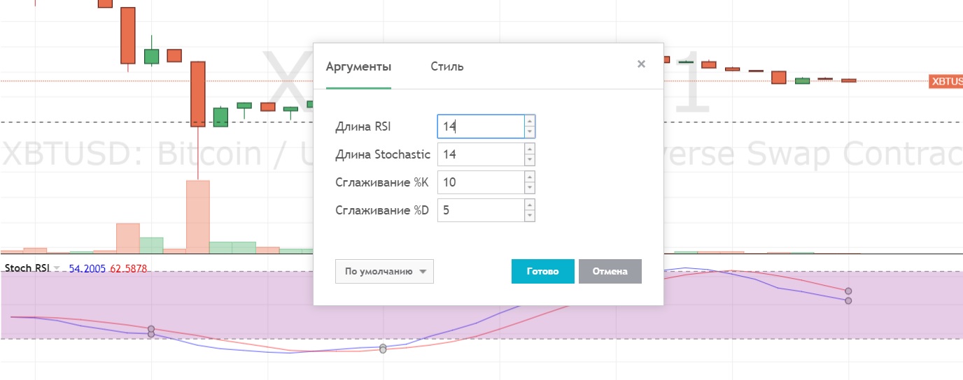 На Bitmex есть StochRsi со сглаживанием и тд. В Тслаб только с одной настройкой индикатор. Подскажите где найти именно такой StochRsi как в Bitmex, чтобы можно было протестировать на tslab. Заранее огромное спасибо.