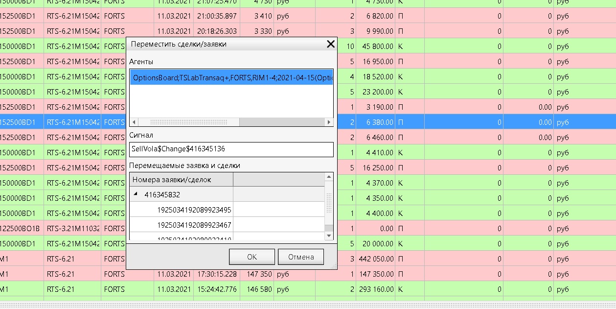 3.2. В таблице "Свои заявки" выбираете исполненную заявку, привязанную к Доске Опционов.