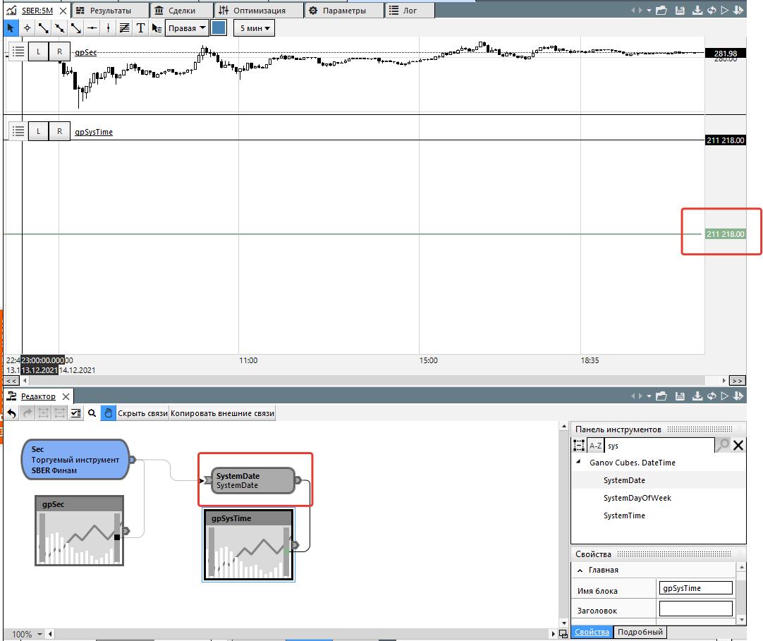 Кубик "SystemDate"Иногда нужно системное время, например, чтобы на всякий случай в агенте ограничить любые торговые движения, если дата "машины" не совпадает с датой инструмента. Кубик потоковый. На входе инструмент, на выходе текущая системная дата в формате "ГГММДД", то есть в формате ТСЛаб.