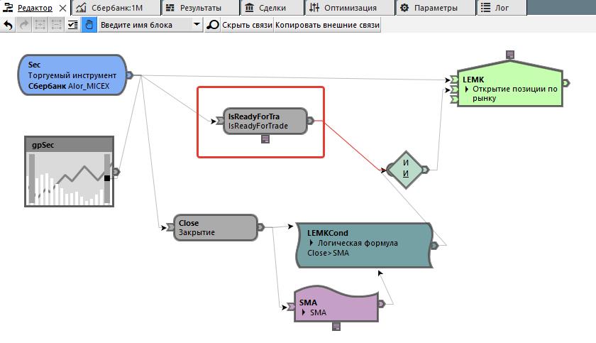 - IsConnected. Контролирует подключен ли коннектор счета, по которому торгуется инструмент на входе в кубик.