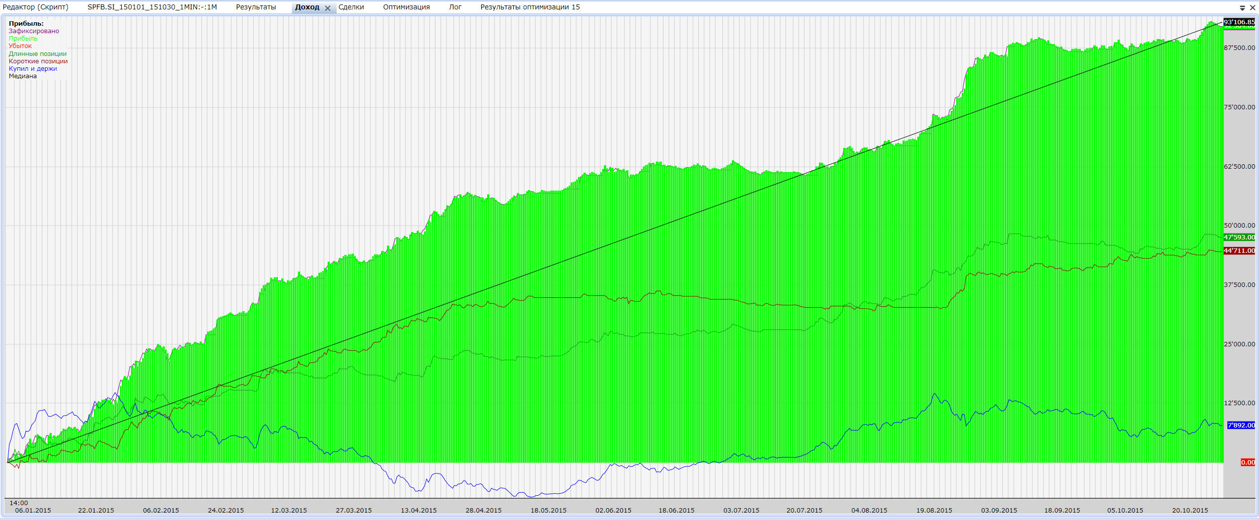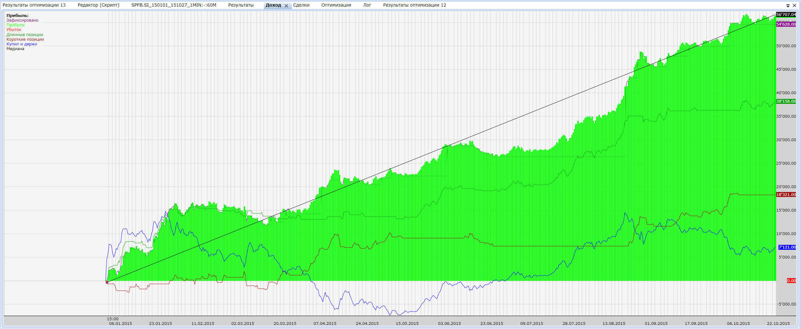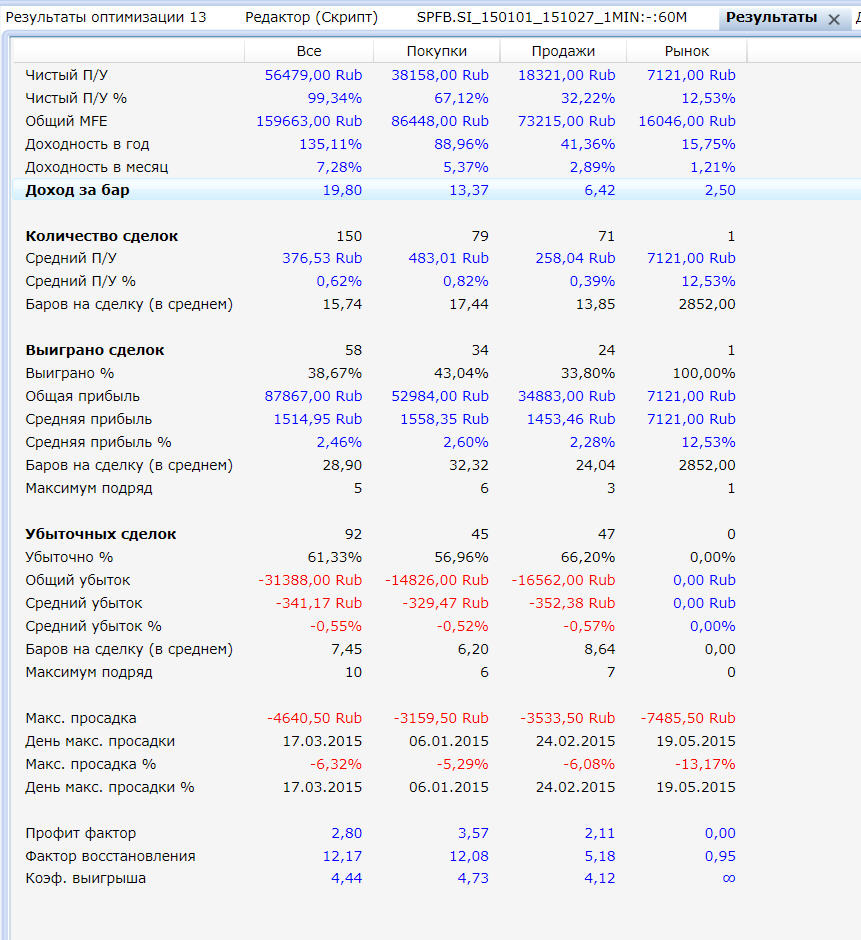 Не верю я тестированию на истории  Хотя активно использую для поиска зоны оптимальных параметров и как правило выбираю параметры из топа по доходности/профит фактору/% выигрыша И эффект переоптимизации еще может быть. Картинки то на истории красивые...