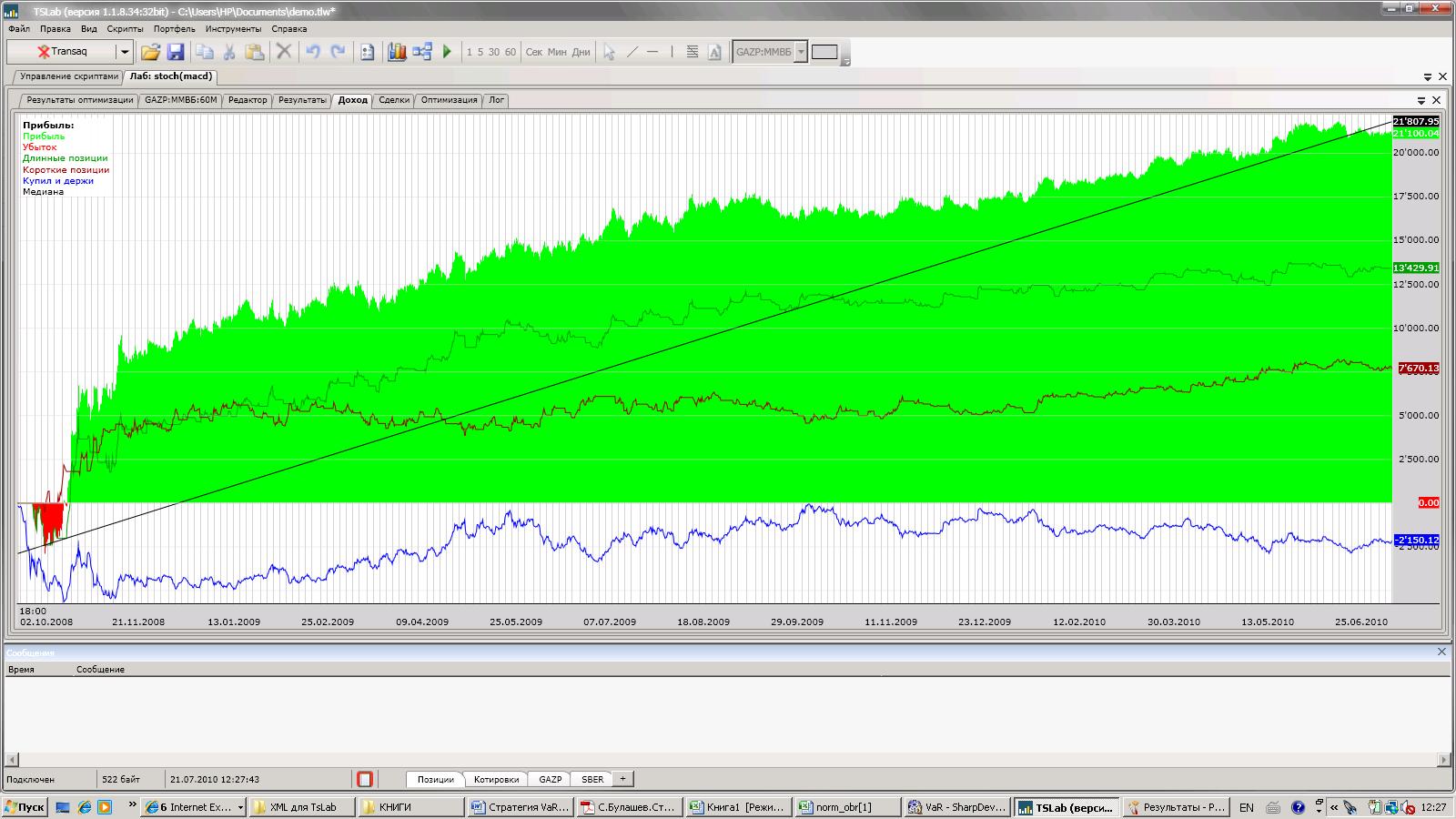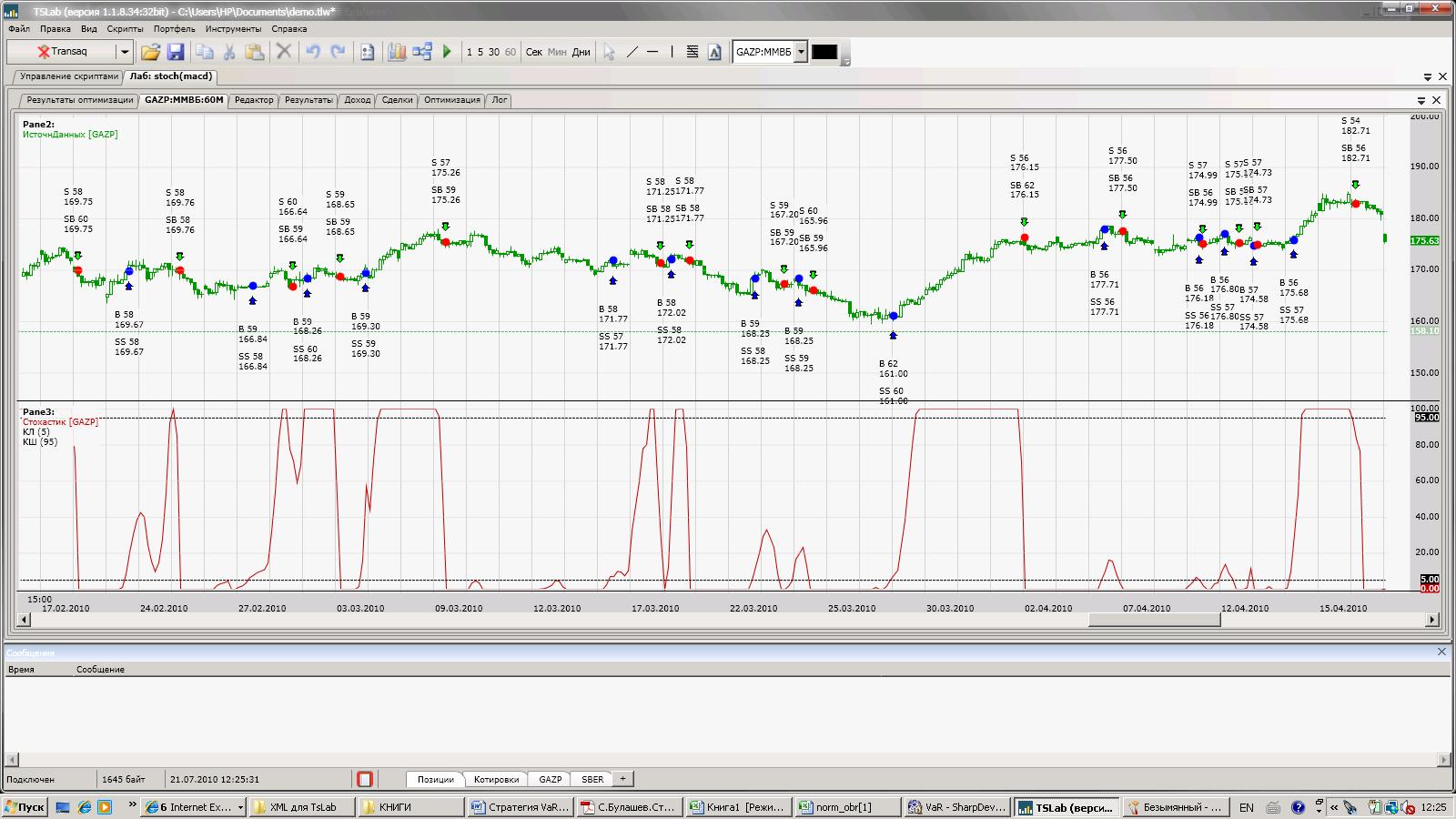 О стратегии moving stochastic можно прочитать вот .zip] Здесь Действующие лица. ** Стохастик от разницы средних Покупаем, когда стохастик пересекает линию перепроданности или перекупленности вверх Продаем когда пересекает линию перекупленности или перепроданности вниз. График Доход Результаты