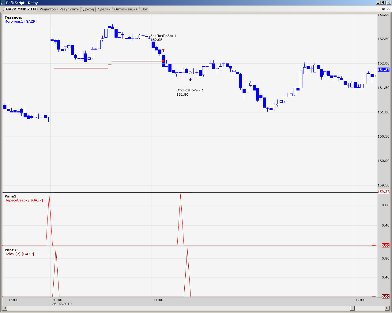 Осталось попробовать "Удерживать сигнал N баров" (две версии) и получить ещё два варианта результатов. А потом гадать на картах какому результату верить... ((( Добавил скрипт с первым вариантом. Если без задержки, условие макда идет на "и" = МАр_St