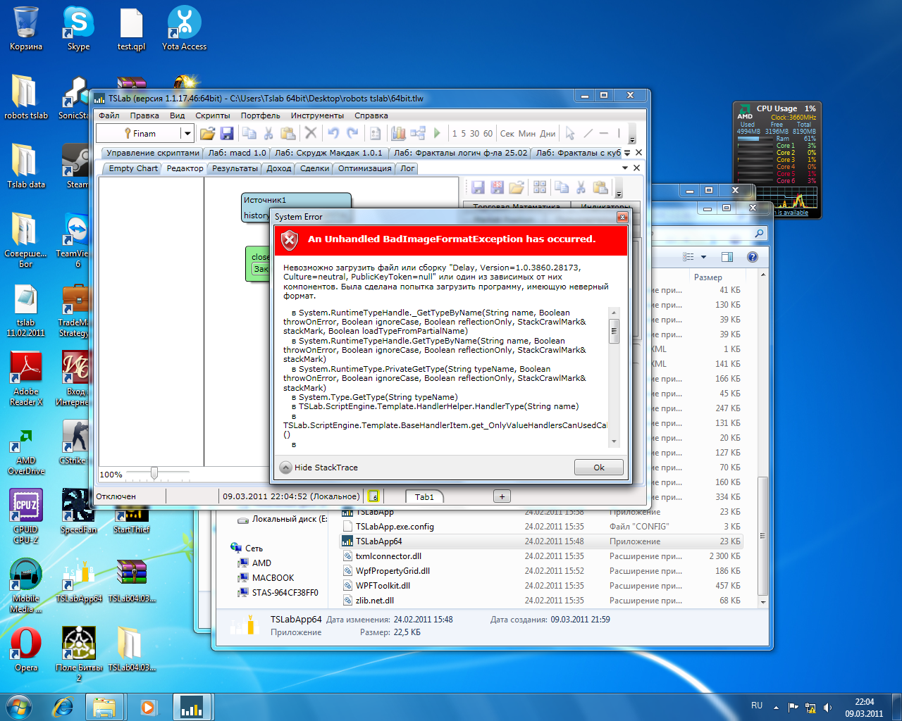 Хочу оптимизировать скрипт с блоком задержки в 64битном тслабе, при загрузке выдает такую ошибку