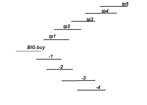 нарисуйте схематично систему я может быть возьмусь осуществить вот точки BIG buy покупка 5 лот дальше уровни тэйк профит. ниже точки где добираем позу или стопимся... ну как то так