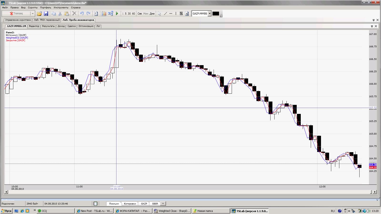 Взвешенная цена закрытия (Weighted Close) Для расчета взвешенной цены закрытия цену закрытия умножают на 2, добавляют значения максимальной и минимальной цен, и полученное значение делят на 4.