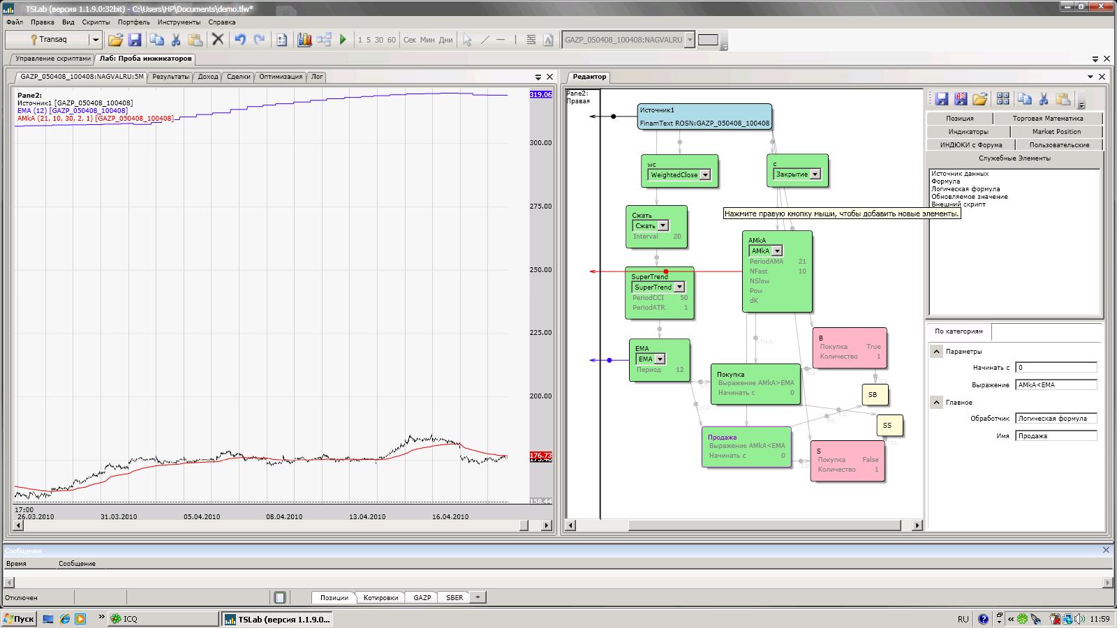 Разработка МТС и торговля с ее помощью в системе TSLab ------