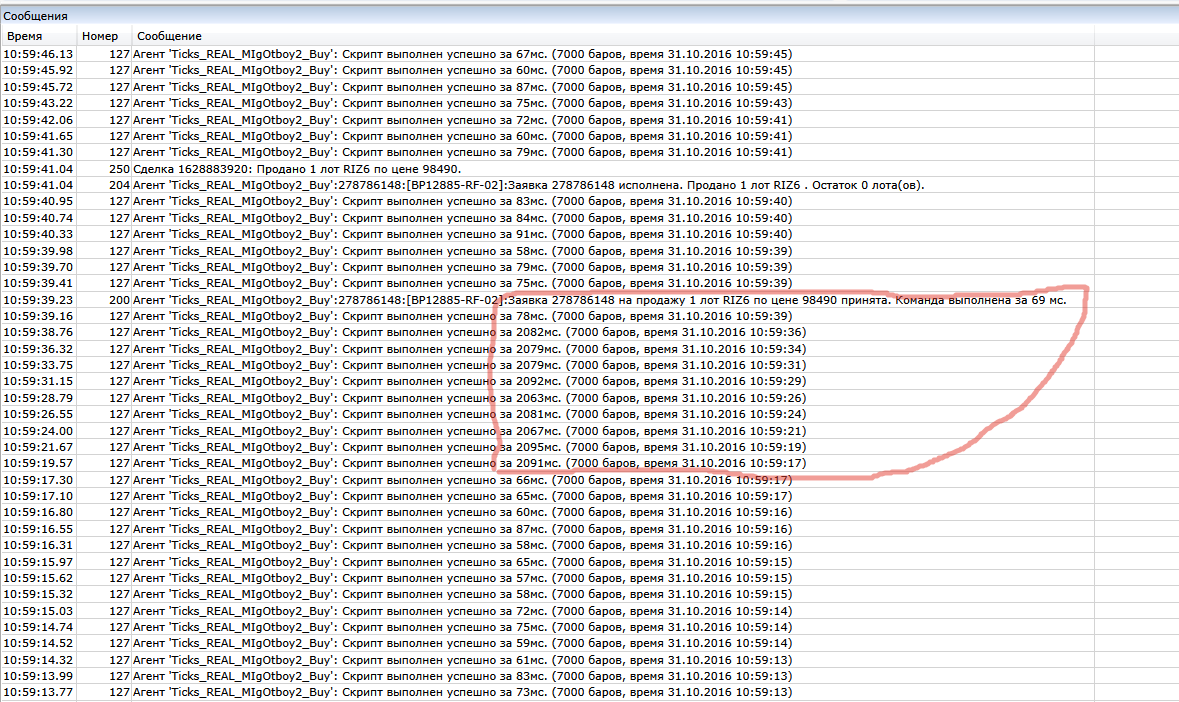 Еще пару вопросов: 1."Ждать исполнения работает ТОЛЬКО если по вашей заявке ударили" Что означает эта фраза, что значит "ударили"? 2. Заявка отправляется на биржу в момент прочтения этой команды sec.Positions.BuyAtPrice(bar + 1, 1, orderEntry, "Buy"); или по завершению работы скрипта?