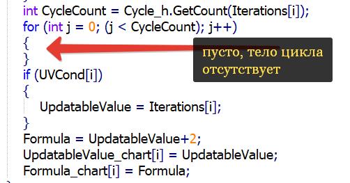 UpdatableValue*(Cycle+1)/(Cycle+1) в формуле после цикла. Дело в том, что номер итерации цикла должен быть каким-либо образом использован в последующей формуле, иначе цикл не "заведется" и будет пытаться присвоить значение текущей итерации кубика цикла за пределами самого цикла, от чего редактор будет при запуске скрипта выбрасывать ошибку "CS0103: Имя "j" не существует в текущем контексте.". Но что если нам не нужен номер итерации в наших вычислениях, тогда разумно умножить значение в формуле на номер итерации и тут же разделить, получим значение формулы без изменений, то есть умноженное на 1, однако, т.к. итерации начинаются с нуля, то если просто указать
